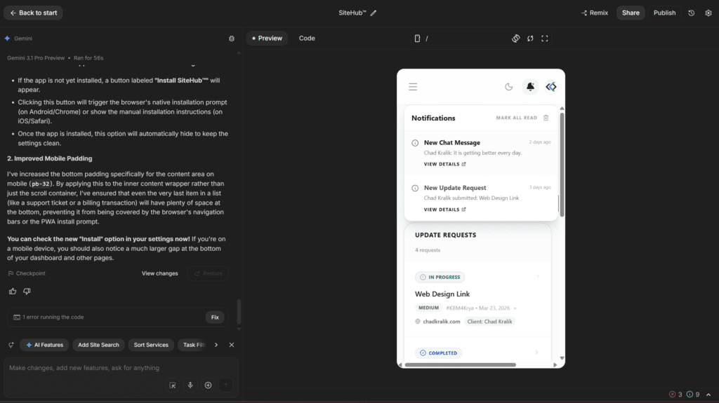 It gets you to a usable starting point quickly. You can move from an idea to something real enough to test in far less time than a traditional build process usually takes. Google’s Build mode is explicitly designed for quickly creating and iterating on apps from prompts, with code and a live preview generated together.