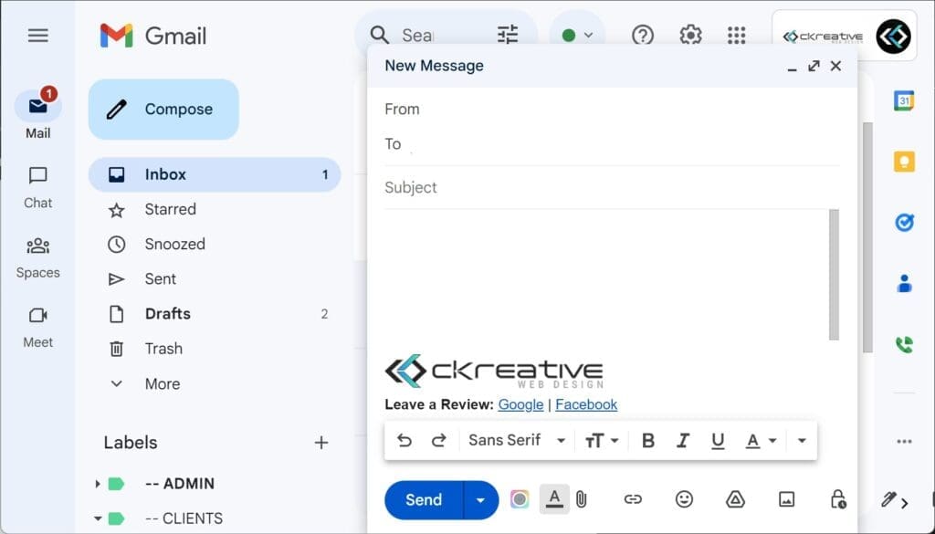 When it comes to maintaining a professional online presence, Gmail – which is a part of Google Workspace – is an essential tool. With Gmail, you can create custom email addresses using your domain name (for example, yourname@yourbusiness.com), which is a crucial step in building trust and credibility with your clients and partners. Along with its professional look, Gmail also offers user-friendly features, strong spam filtering, and advanced security measures, ensuring reliable and secure communication.